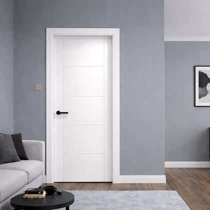 Budget friendly doors crafted using MDF face on a timber subframe, with a honeycomb lightweight core and a smooth white primed finish. Ready for the topcoat of your choice.